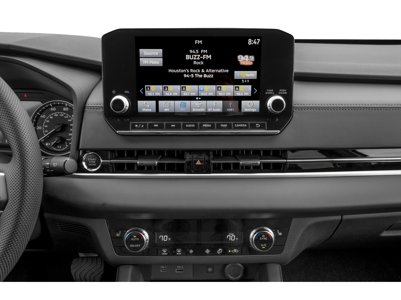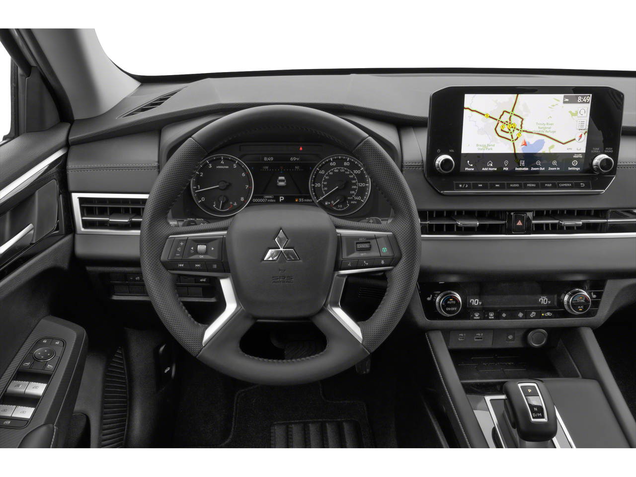 - Radio: AM/FM 9.0" Navigation w/Smartphone Link -inc: 6 speakers, Apple CarPlay, Google Android Auto, SXM all-access and SXM traffic and travel link w/90-day subscription, Mitsubishi Connect, HD Radio, smartphone wireless charger, Bluetooth® wireless technology, steering wheel controls for phone, audio and voice recognition and USB ports